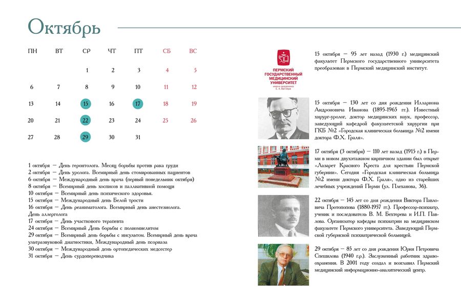 КАЛЕНДАРЬ ЗНАМЕНАТЕЛЬНЫХ ДАТ В ЗДРАВООХРАНЕНИИ ПЕРМСКОГО КРАЯ НА 2025 Г.